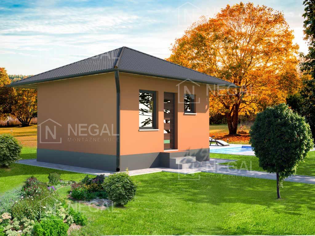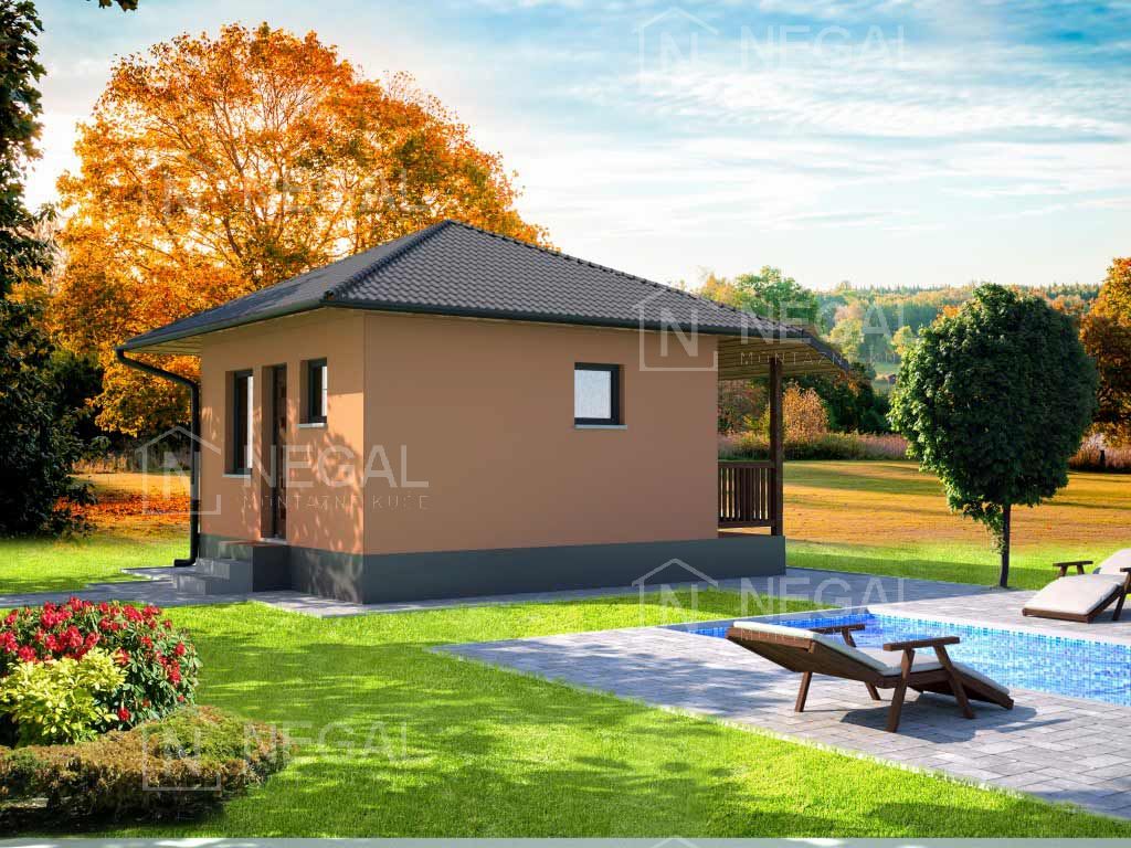 Montažna kuća iz kategorije Klasik. Malih gabarita 5,16m x 5,16m ali ima sve funkcionalne celine za boravak preko vikenda u prirodi. Idealna za prigradska naselja gde se možete u prirodi skloniti od svakodnevne buke.
