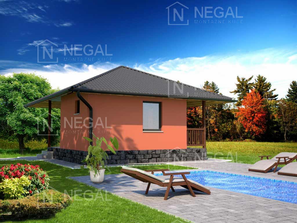 Vikend kuća iz kategorije Klasik. Jednostavne svedene forme sa krovom na četiri vode idealno se uklapa u prirodno okruženje. Ima sve funkcionalne celine za udoban boravak porodice tokom vikenda u prirodi.